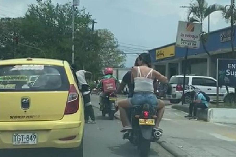 En video: pareja que se movilizaba en motocicleta no llevaba casco de seguridad