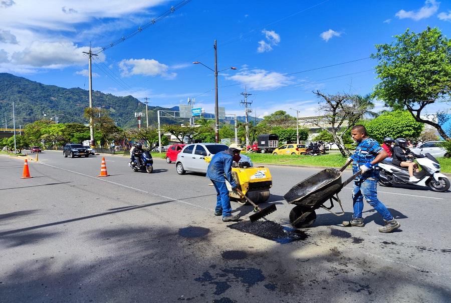 Allí, la cuadrilla de parcheo se prepara para intervenir más de 30 huecos que afectan la movilidad entre la calle 80 y la glorieta de Mirolindo, sobre ambos carriles de la avenida Pedro Tafur.