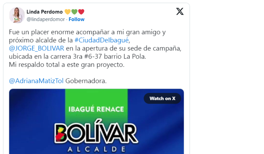 Curiosamente, la controversial ex presidente del Concejo Municipal, Linda Perdomo, quien también le dio el visto bueno a las fotomultas en su momento, hoy respalda a 'carta abierta' a Jorge Bolívar en su aspiración de convertirse en el mandatario de los ibaguereños.