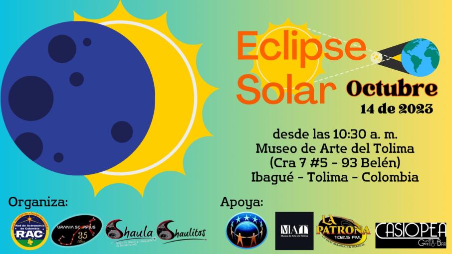 Desde las 10:30 a.m. en la plazoleta del Museo de Arte del Tolima, la Asociación Urania Scorpius y su Grupo Satélite Shaula, quienes conservan el legado que dejó el profesor Alonso Medina Cardona, guiarán la observación segura del Eclipse Anular de Sol, que será visible en un 93%.