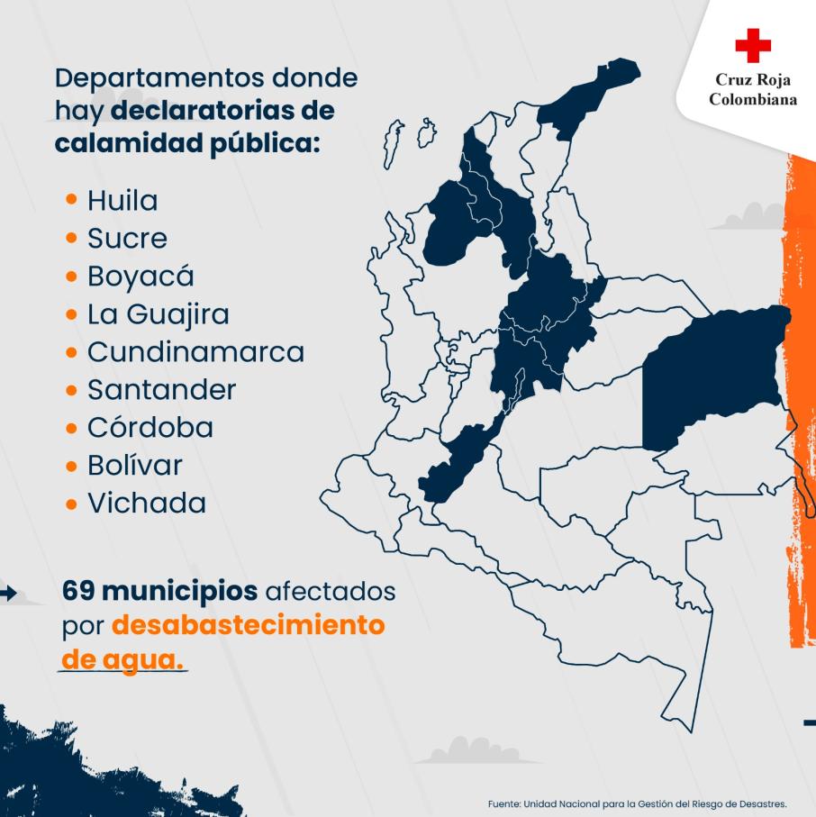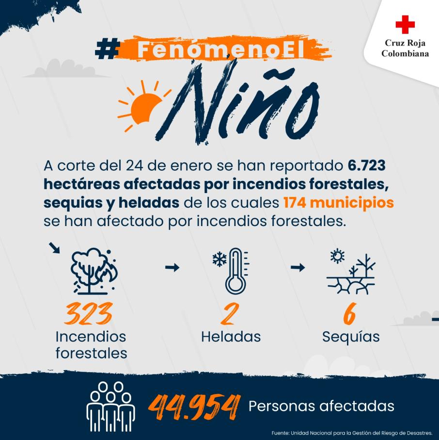 Algunas regiones de Colombia tales como la región Caribe, Andina y Orinoquía están atravesando por una disminución en las precipitaciones, asociadas a la presencia del Fenómeno El Niño y a la primera temporada de menos lluvias del país. Se han presentado también altas temperaturas, registrando en ciertos municipios inclusive, récord históricos de aumento de temperatura según lo reportado por el Instituto de Hidrología, Meteorología y Estudios Ambientales (IDEAM).