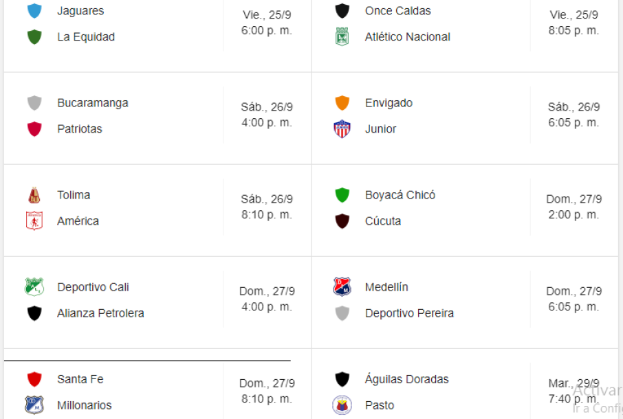 La fecha del próximo fin de semana comienza el viernes en Montería cuando Jaguares reciba la visita de La Equidad, y ese mismo día Ónce Caldas en el Palogrande enfrenta al Atlético Nacional. El sábado se llevarán a cabo tres partidos, el domingo habrá cuatro compromisos y el martes terminará la jornada en suelo antioqueño con la disputa entre Águilas Doradas y Deportivo Pasto.