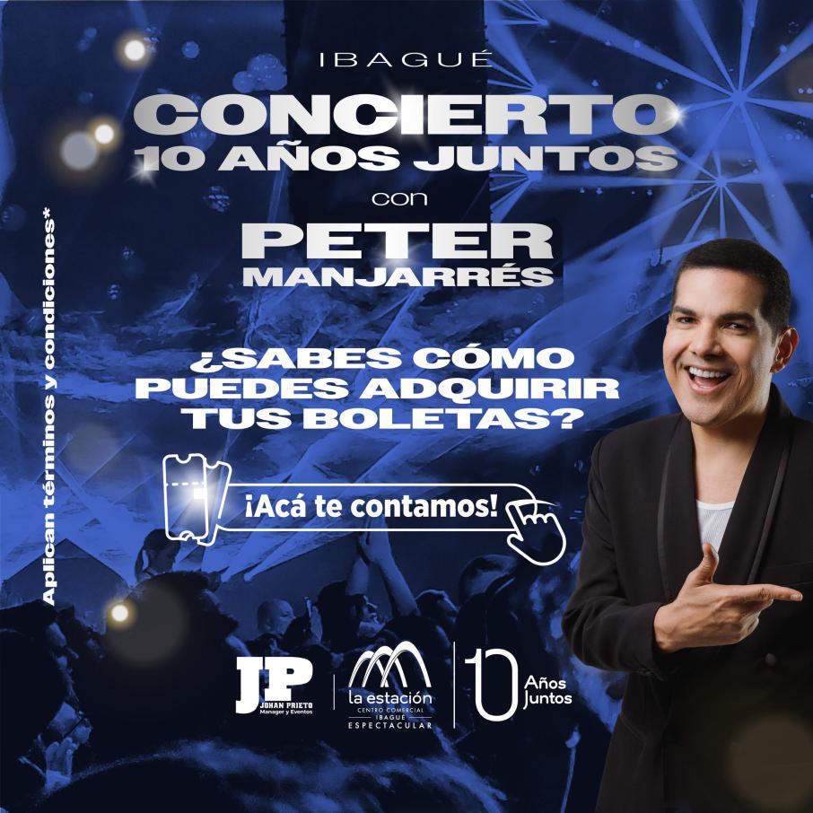 Para este viernes, 3 de octubre, el complejo también ofrece una velada memorable al son del reconocido cantante Peter Manjarrés. Un concierto en el que también participarán artistas locales desde las 7:00 de la noche en el estacionamiento descubierto del centro comercial.