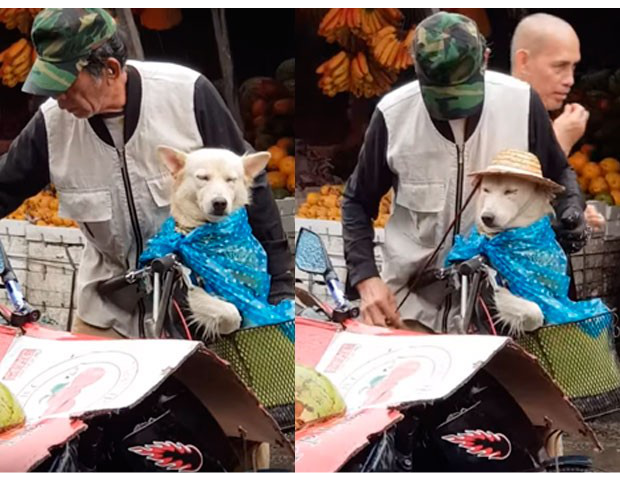 Además, el anciano saca de la canasta trasera de su bicicleta un pequeño sombrero de paja que coloca en la cabeza del animal para evitar que se moje. El video que se ha vuelto viral ha enternecido a varios cibernautas en las redes sociales.
