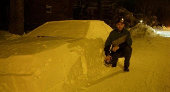 Artista esculpió automóvil de nieve y policía le dejó un parte de película