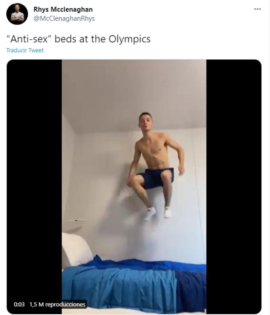 El gimnasta irlandés Rhys McClenaghan insistió en demostrar que la información era inexacta motivo por el que se grabó saltando sobre una de las camas. "Se supone que las camas son 'anti-sexo', si están hechas de cartón, deberían romperse al menor movimiento brutal, dicen. No es cierto, son 'fake news", dijo el deportista a través del video que posteó en su cuenta de Twitter.