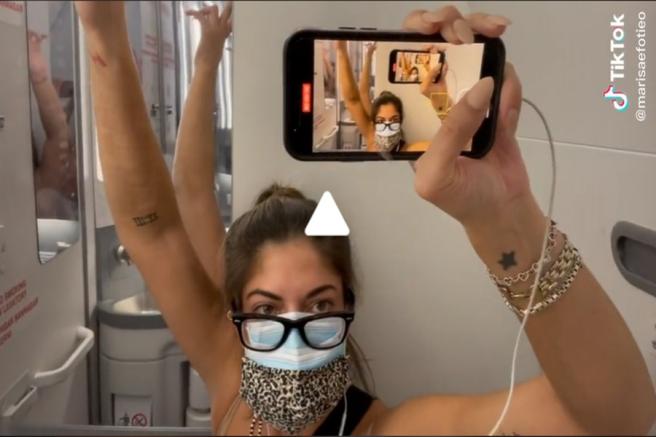 Contenido multimedia principal Profesora estuvo cinco horas en el baño de un avión tras descubrir que era positiva para COVID-19 La mujer descubrió que tenía el virus mediante una prueba rápida que se hizo durante el vuelo.