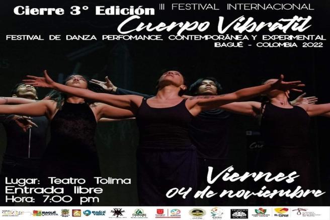Contenido multimedia principal No se puede perder el Cierre de la 3° edición del "Festival Internacional Cuerpo Vibrátil" Los asistentes podrán presenciar con entrada libre de un espectáculo de danza performance contemporánea y experimental.