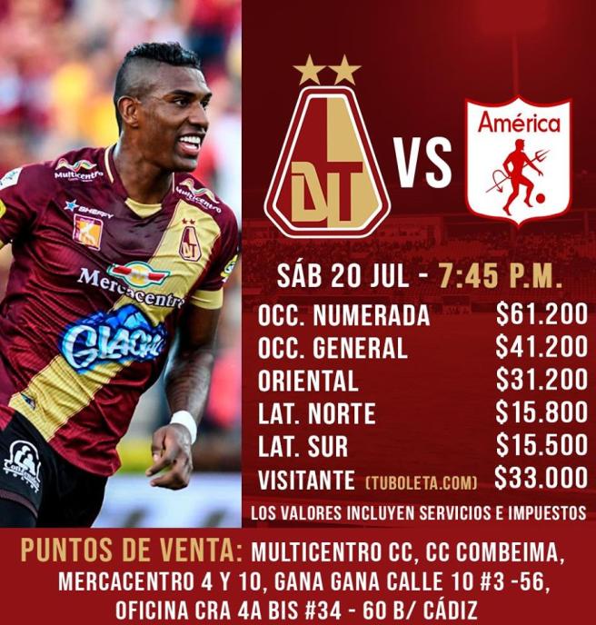 Contenido multimedia principal ¡ATENCIÓN! Conozca las medidas de seguridad del partido entre el Deportes Tolima frente al América de Cali El ingreso para niños menores de edad será en las tribunas Norte-Oriental, Oriental y Occidental acompañados por una persona mayor de edad.
