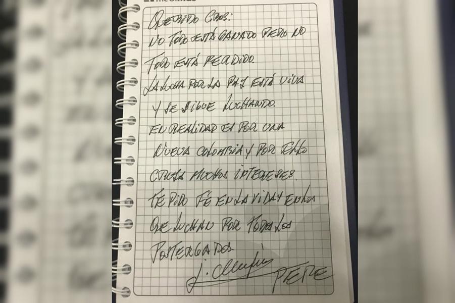 Luego de este encuentro, El Espectador conoció una carta que el ex mayor mandatario de Uruguay escribió a Santrich.