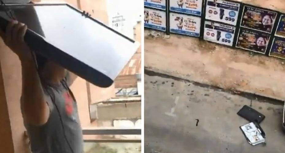 En video: argentino enloqueció por la eliminación del Mundial y arrojó su televisor por el balcón del edificio