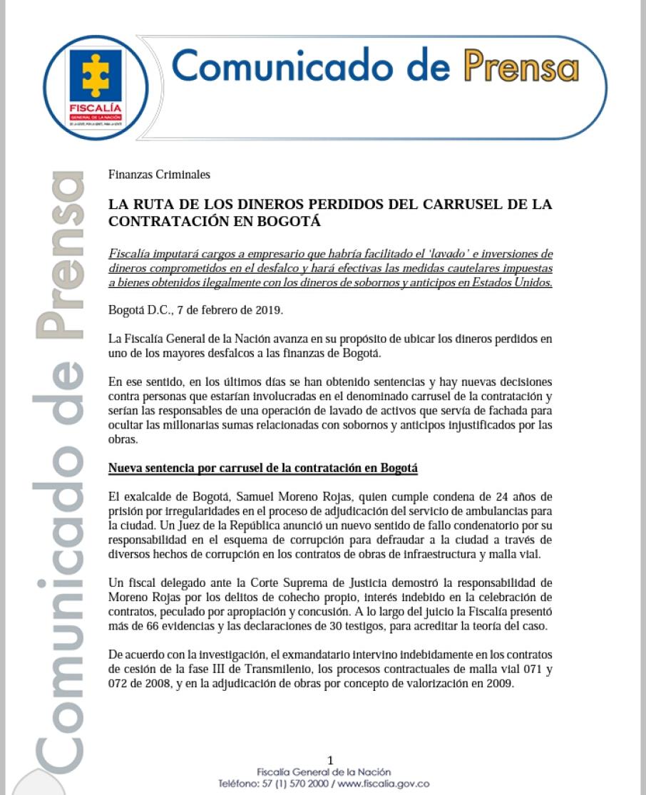 Roldán Velasco fue capturado en las últimas horas por la Sijín de la Policía Nacional y no se allanó a los cargos imputados por la Fiscalía, al ser presentado ante un Juez con Función de Control de Garantías.