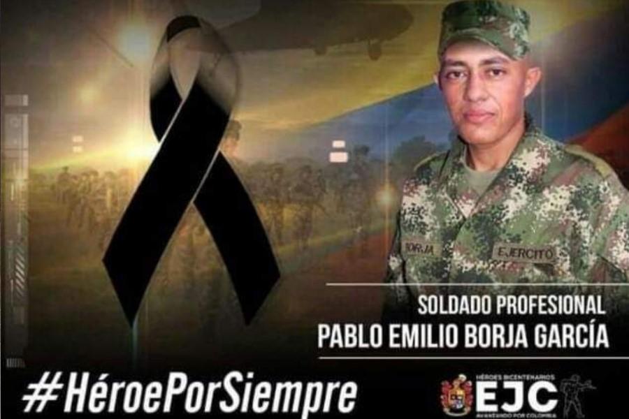 2. De forma inmediata se activaron los protocolos de seguridad para ofrecer el apoyo médico a las héroes afectados, pero lamentablemente, como resultado de este atentado terrorista el Soldado Profesional Pablo Emilio Borja García, fallece por la gravedad de las heridas.