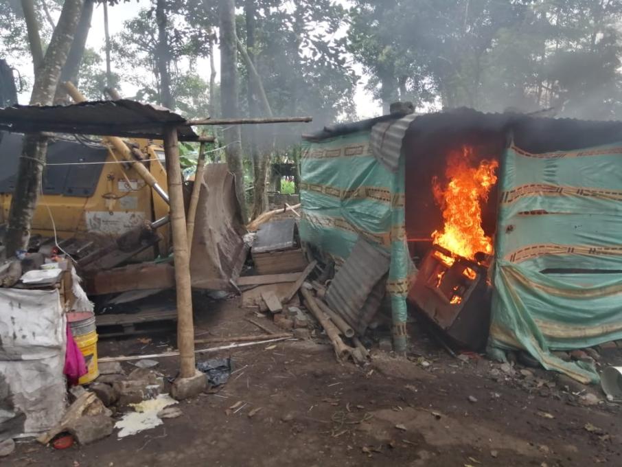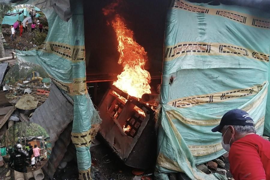 Fue así que ante la utilización de la Fuerza, la ciudadanía allí ubicada decidió salir del predio, cargando conchones y enseres en medio de lágrimas, mientras una retro-excavadora destruía las viviendas improvisadas para que posteriormente otros funcionarios les prendieran fuego.