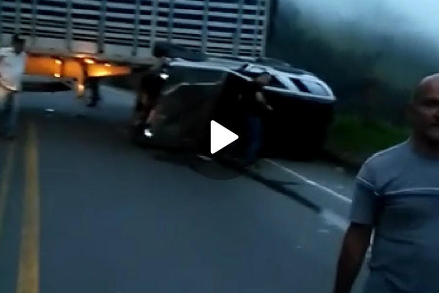 El delicado hecho de accidentalidad se registró en las últimas horas a unos cinco kilómetros del Peaje de Cajamarca, sector conocido como Boquerón, luego que el conductor de un vehículo de carga pesada terminara sufriendo una falla mecánica en su sistema de frenos, generando que por el peso empezara a retroceder e impactara a por lo menos cuatro vehículos.