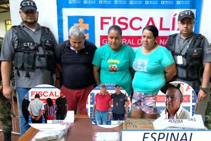 Producto de la intervención fueron capturados: Maria Rubiela Feria Castro, Salomon Carvajal Guzman, Maria Lida Feria Castro, Jorge Bedoya, Pedro María Zabala Rodríguez, Adalia Rojas Páramo e Israel Baquiro.
