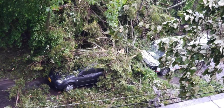De estas últimas novedades, las más graves fueron la de la carrera Quinta y la Sexta, donde los árboles cayeron sobre varios vehículos, dejando una persona lesionada.