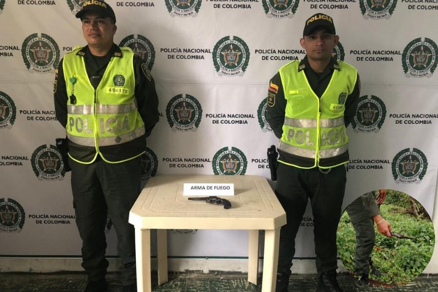 Sin embargo, mientras escapaban del lugar uno de los sujetos arrojó una bolsa plástica hacia una zona boscosa, la cual al ser ubicada e inspeccionada por parte de los patrulleros, se pudo establecer que contenía un revólver calibre 38 con varios cartuchos para el mismo, tal forma que procedieron a realizar la respectiva incautación.