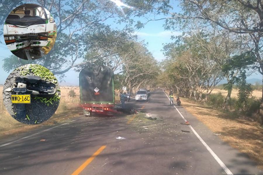 Según se pudo establecer por parte de las autoridades, la hoy víctima viaba en sentido hacia la capital tolimense, cuando aparentemente el conductor de la turbo quiso adelantar a otro automotor, invadiendo el carril del motero quien no la pudo esquiva y colisionó con fuerza.