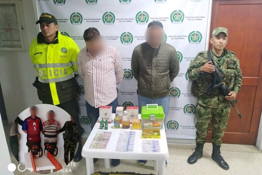 De otra parte, en medio de labores de patrullajes en la vereda Lisboa del municipio de Anzoátegui, se capturó a dos sujetos momentos en los que utilizaban una motosierra para talar varios árboles sin ningún tipo de permiso.