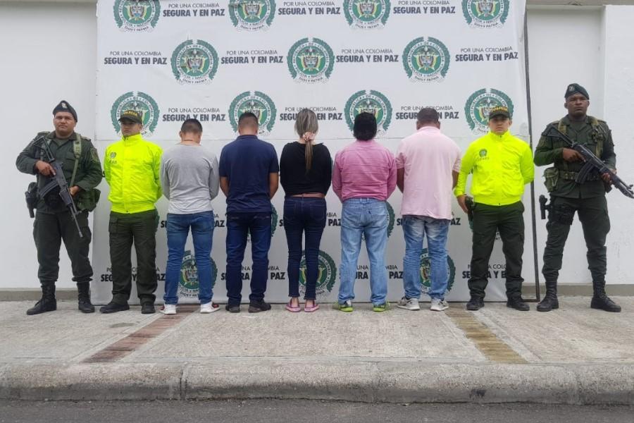 Se trata de Carlos Alfredy Pachón Varón, quien fuera detenido por miembros de la Policía de la Dirección de Carabineros en San José de Ariporo (Casanare); Norby Constanza Rodríguez Russy, capturada en Ibagué (Tolima); Antonio González Collazos en Neiva (Huila); Jorge Enrique Luna Aranzalez en Bogotá, y Mario Andrés Roa Pinzón, en Bucaramanga (Santander).