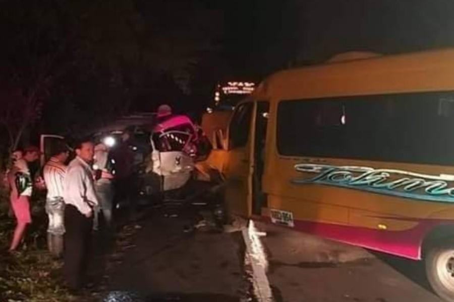 El aparatoso accidente de tránsito se registró a altas horas de la noche de este miércoles en el kilómetro 53 de la vía que del municipio de El Espinal conduce a la ciudad de Neiva, donde las autoridades de tránsito del Huila tuvieron que atender la violenta colisión entre dos vehículos de servicio público que viajaban en sentido contrario.