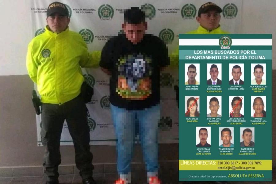 Vale la pena señalar que es el tercer capturado de los 11 que aparecen en el cartel de los más buscados en el Tolima.