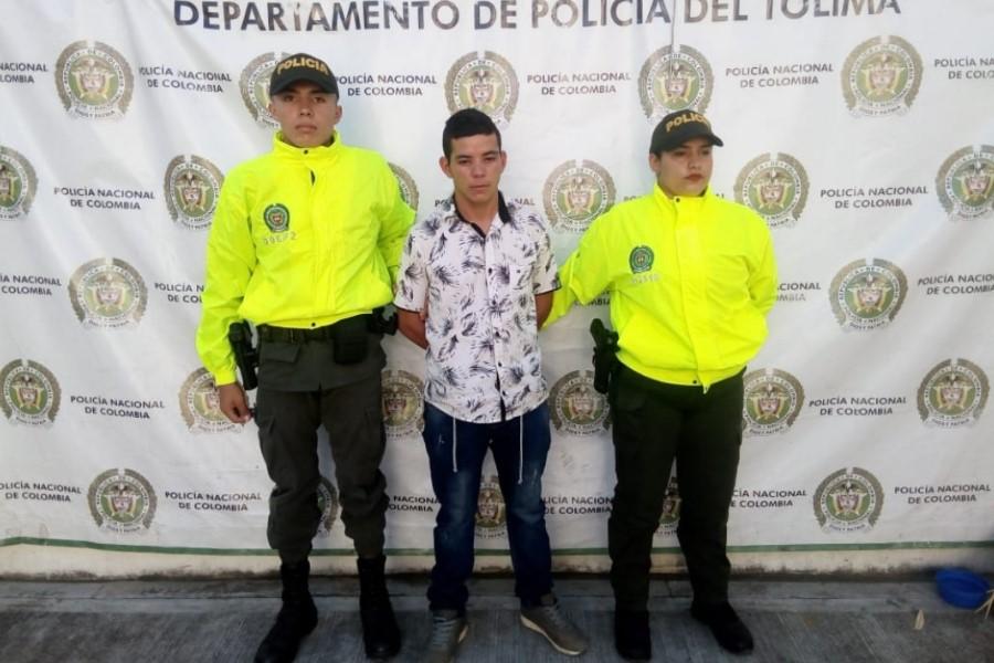 El joven de 22 años, quien no aceptó los cargos, fue detenido por personal de policía judicial Sijín del Departamento de Policía del Tolima, en el casco urbano de esa municipalidad, mediante orden judicial.