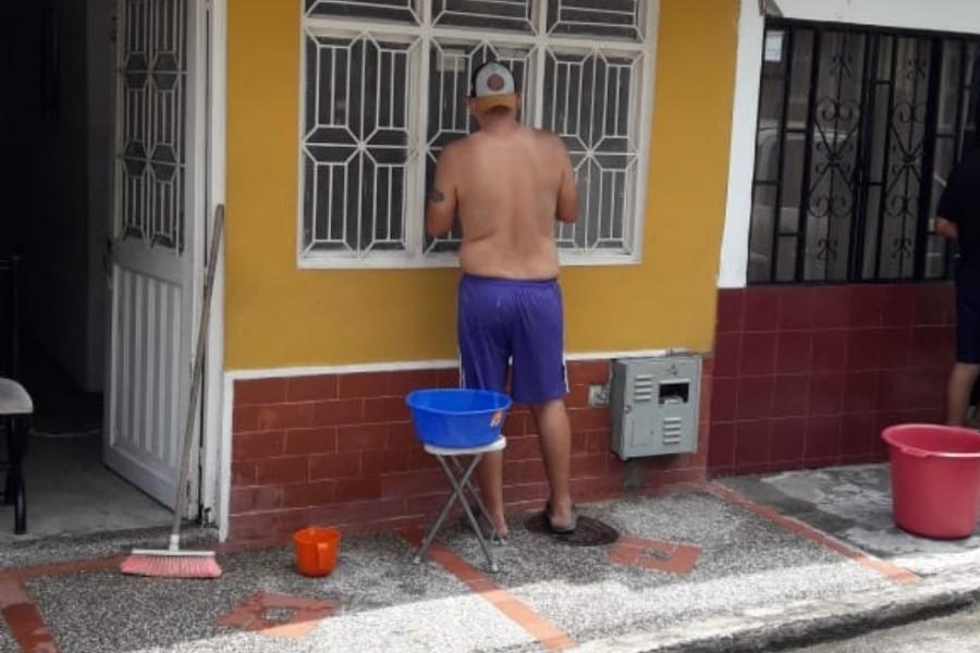 Habitantes del barrio Las Ferias adelantaron jornada de lavatón de la fachada de sus casas