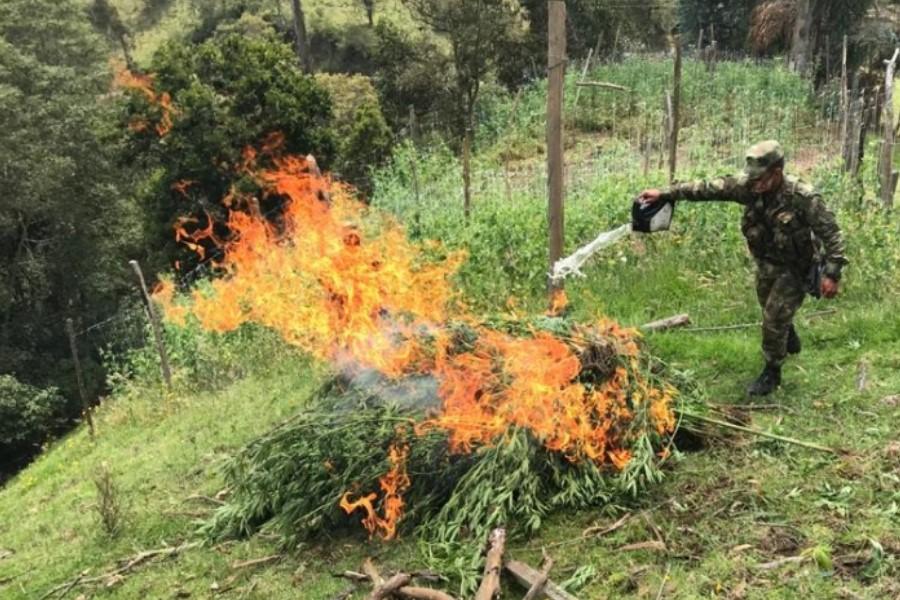Tropas del Ejército erradicaron más de 300 matas del marihuana en el norte del Tolima