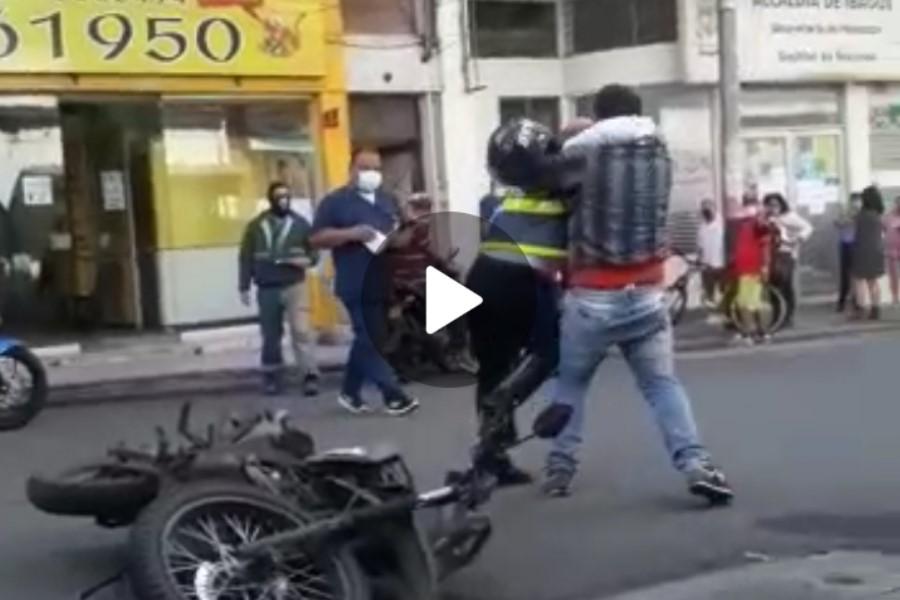 Una vez el funcionario le notificó al ciudadano de la moto el procedimiento a seguir, se inició una confrontación verbal la cual rápidamente se salió de control, hasta el punto de iniciar un forcejeo en medio del cual una motocicleta terminó derribada en el piso.