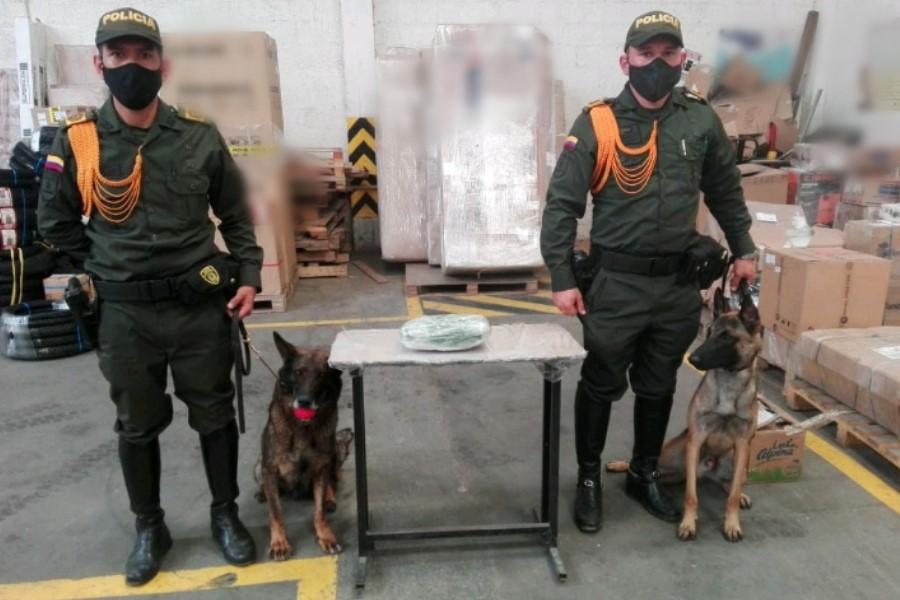 De acuerdo con la información suministrada por las autoridades, en medio del procedimiento de inspección con uno de los perros antinarcóticos, fue localizado un paquete en cuyo interior habían mil 73 dosis de marihuana de alta calidad tipo cripy, avaluada en por lo menos tres millones de pesos.