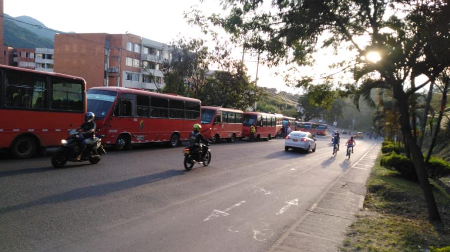 Por lo anterior, el día de hoy se programó un cese de actividades de los vehículos de la 'Ola Naranja', de tal manera que a esta hora están ubicados desde el semaforo del barrio Santa Ana, hasta mas arriba del semaforo ubicado en el sector de la Plaza del Jardín.