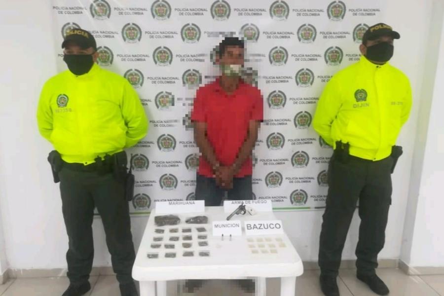 Información suministrada por parte de las autoridades, indica que en medio de la acción operativa se logró la captura de este sujeto de 34 años, a quien le hallaron en su poder un arma de fuego tipo revólver calibre 32 de fabricación artesanal, 180 dosis de marihuana y 11 de bazuco.