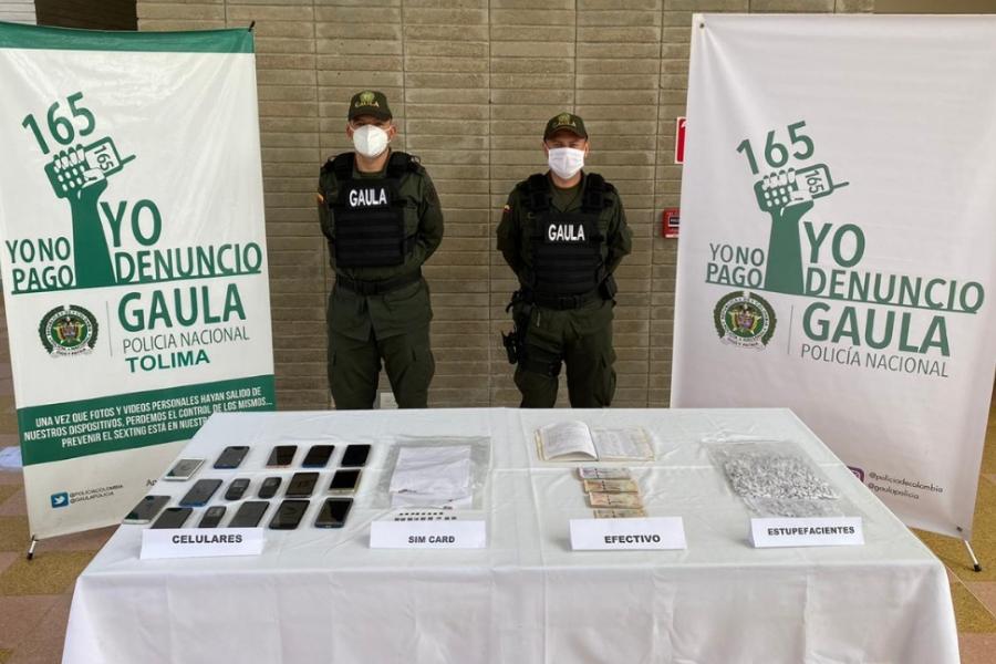 Entre lo incautado se encuentran 16 equipos celulares, 39 tarjetas SIM, 3 agendas con información de posibles víctimas de dicho delito, 1’631.000 de pesos en efectivo y cocaína.