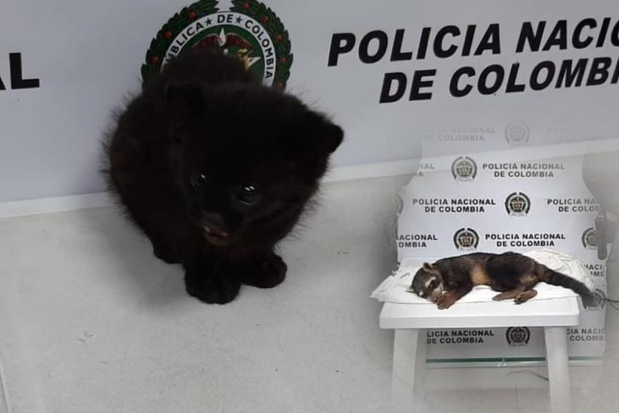 El primer hecho se presentó sobre la vereda Horizonte del corregimiento de Convenio, lugar donde personal del cuadrante de la subestación de Policía logró el rescate de una cría de felino de nombre científico yaguarundí, el cual se encontraba indefenso y solo a un costado de la vía.