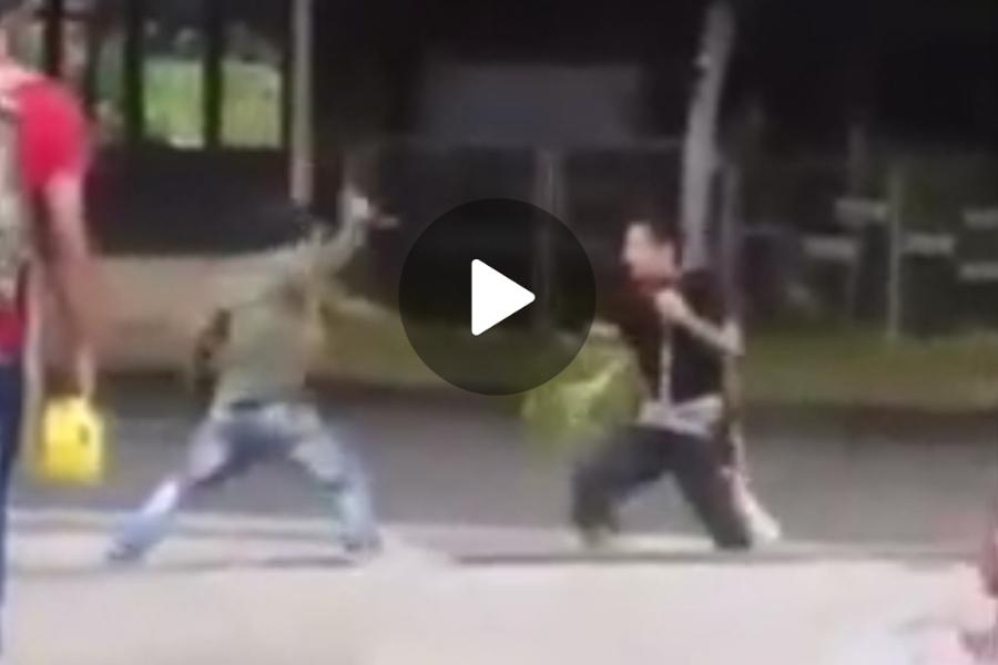 En el video, inicialmente se observa a dos muchachos que ondean sus hojas de metal con el objetivo de causarse graves lesiones, de tal manera que los demás ciudadanos que a esa hora practicaban su disciplina deportiva decidieron interrumpirla para observar el enfrentamiento.