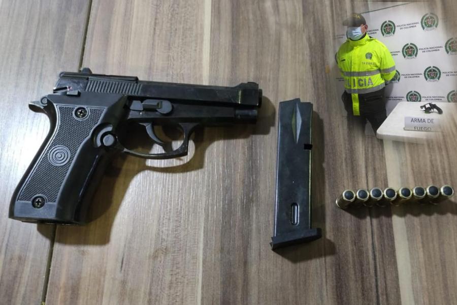 El primer hecho se presentó momentos en que personal del cuadrante se encontraba realizando patrullajes sobre el parque principal del municipio de Murillo, lugar donde los uniformados lograron la incautación de un revólver calibre 38, el cual estaba en posesión de una persona de 69 años. Aunque el arma era legal, el ciudadano tenía permiso sólo para la tenencia más no para el porte.