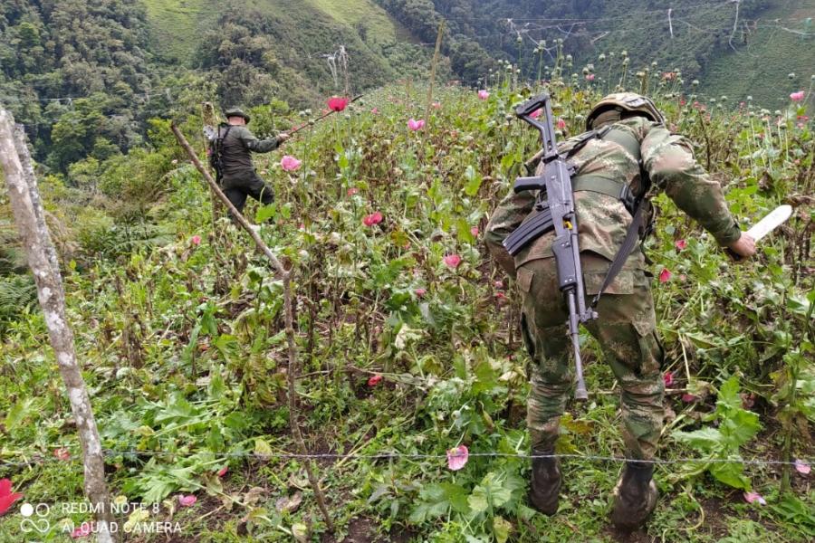 Todo indica que estos cultivos pertenecían a las disidencias de las FARC, puntualmente al Comando Conjunto Central Adán Izquierdo, donde en el primer lote tenía cultivadas 8.522 plantas, el segundo lote tenía 3.551 plantas y en el tercer lote tenían 12.800 plantas de amapola.
