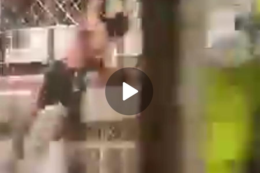 De un momento a otro un sujeto sin buso, pantaloneta y zapatillas decidió arrojarse hacia la calle, pero abajo lo estaba esperando un grupo de ciudadanos que trataron de aplicarle la justicia a mano propia.