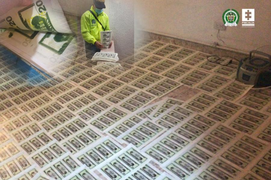 En una vivienda ubicada en el oriente de Cali (Valle del Cauca), la Fiscalía General de la Nación y la Dijin de la Policía Nacional encontraron una imprenta industrial, tintas, negativos y plantillas para elaborar billetes de diferentes denominaciones. En el lugar fueron incautados 139.600 dólares americanos falsos.