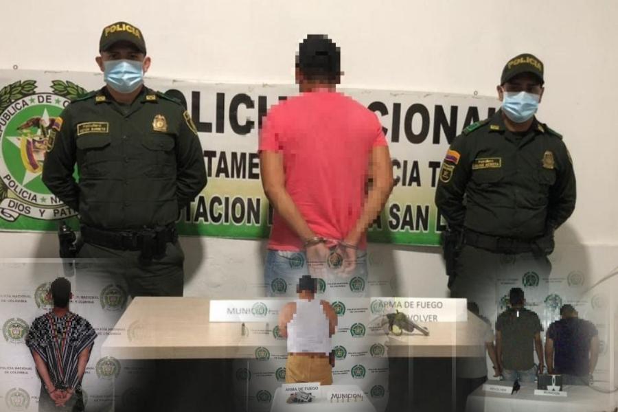 El cuarto caso se presentó sobre la carrera 5ª del barrio San Ignacio del municipio de San Luis, lugar en el que personal del cuadrante logró la captura en flagrancia de un sujeto de 46 años, a quien mediante registro se le incautó un arma de fuego tipo revólver de fabricación artesanal calibre 38, con dos cartuchos para mismo.