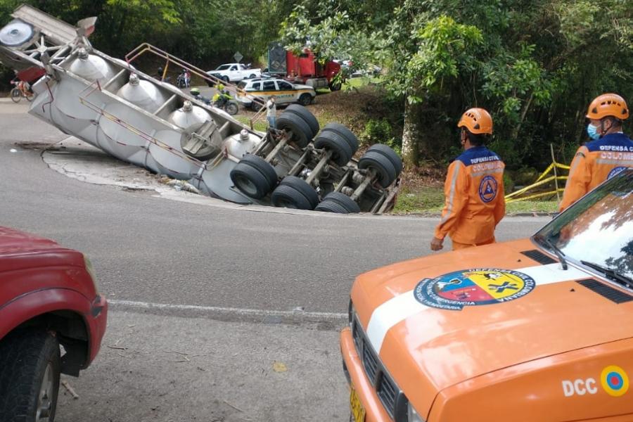 Información entregada por parte de las autoridades, indica que la novedad se presentó en la vía que une a Fresno con el municipio de Mariquita, en el sector conocido como 'La Curva del Diablo', donde un camión cisterna terminó volcándose lateralmente.