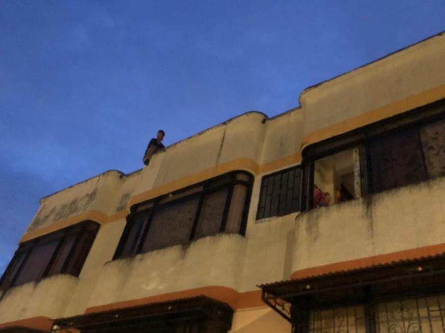 Ya con los primeros rayos de sol, el delincuente se sentó en el borde de la casa y ahora está amenazando con lanzarse porqué no tiene nada por lo que vivir.