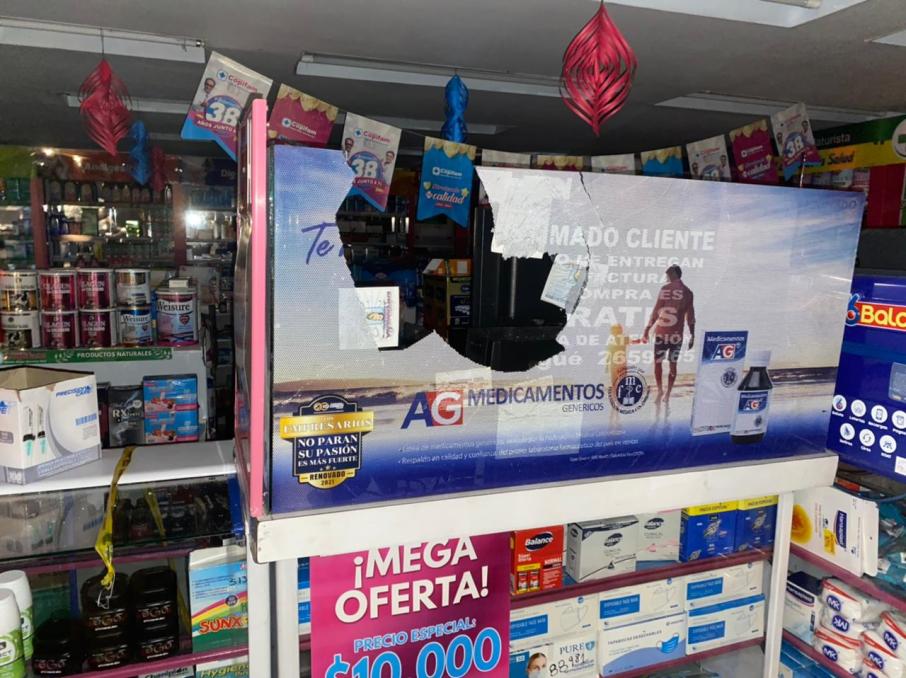Algunos testigos señalaron que estos sujetos incluso amenazaron al vigilante del edificio y varios residentes de la zona que quisieron intervenir, mientras destruían el local de la droguería.