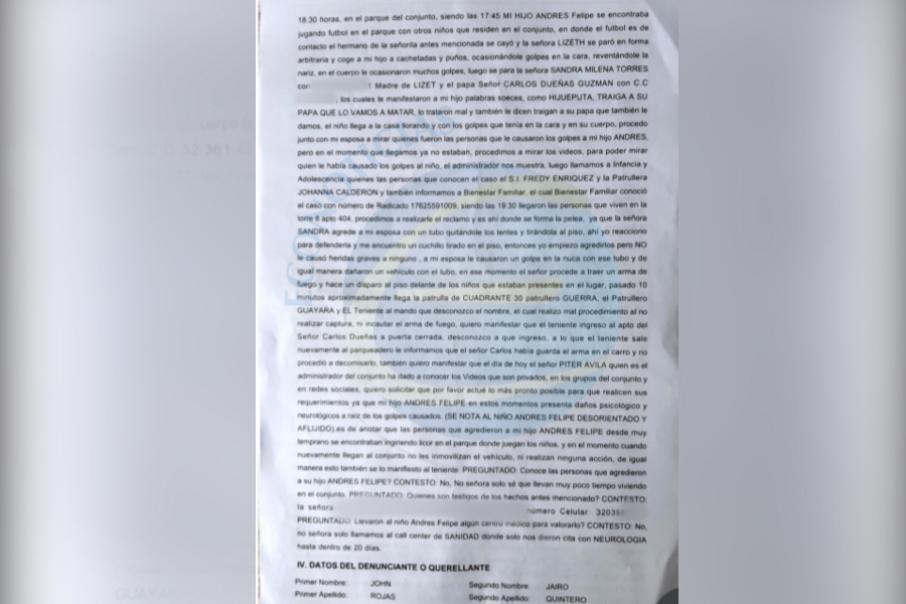 Adicionalmente se conoció que el día en el que ocurrieron los hechos, los padres del menor afectado decidieron realizar el respectivo reclamo, pero la familia de la joven agresora salió en su defensa y al parecer utilizaron un arma de fuego para intimidar al papá del niño. Por lo menos así reposa en la denuncia instaurada ante la Fiscalía.