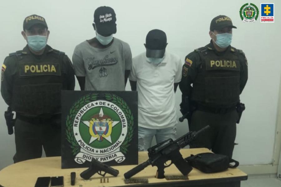 Estos dos hombres fueron capturados en situación de flagrancia por unidades de la Policía Metropolitana de Cali, luego de supuestamente atacar al artista frente a un establecimiento comercial en el sur de la ciudad.