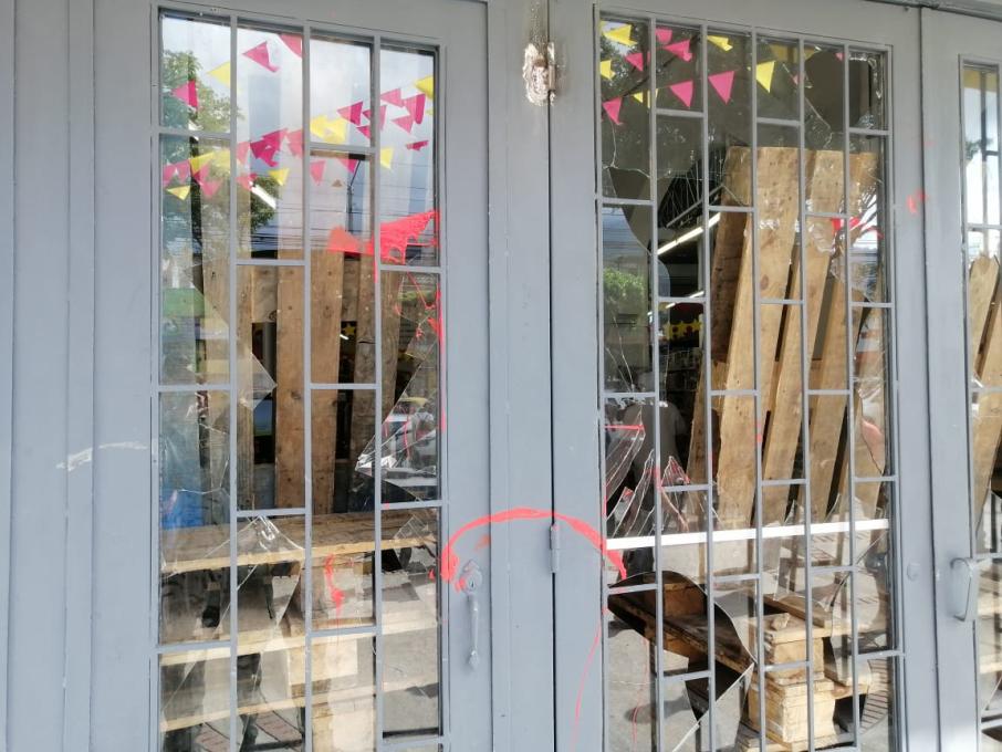 Fue tal la situación, que los empleados del supermercado tuvieron que ubicar unas estibas y algunos otros elementos, para tratar de evitar que las piedras y demás objetos terminara por golpearlos. Sin embargo, casi todos los vidrios del lugar fueron destruidos y salpicados con pintura.