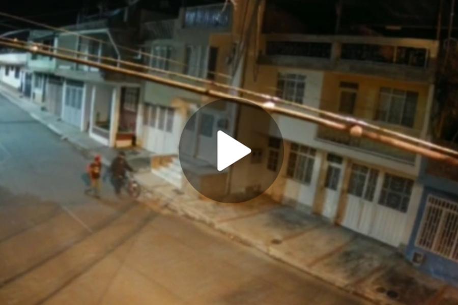 Así quedó registrado a través de la cámara de seguridad ubicada en un poste del barrio Naciones Unidas, ubicado cerca a las instalaciones del estadio Manuel Murillo Toro de la ciudad de Ibagué, donde la ciudadanía venía siendo afectada con algunos robos en horas de la noche y la madrugada.