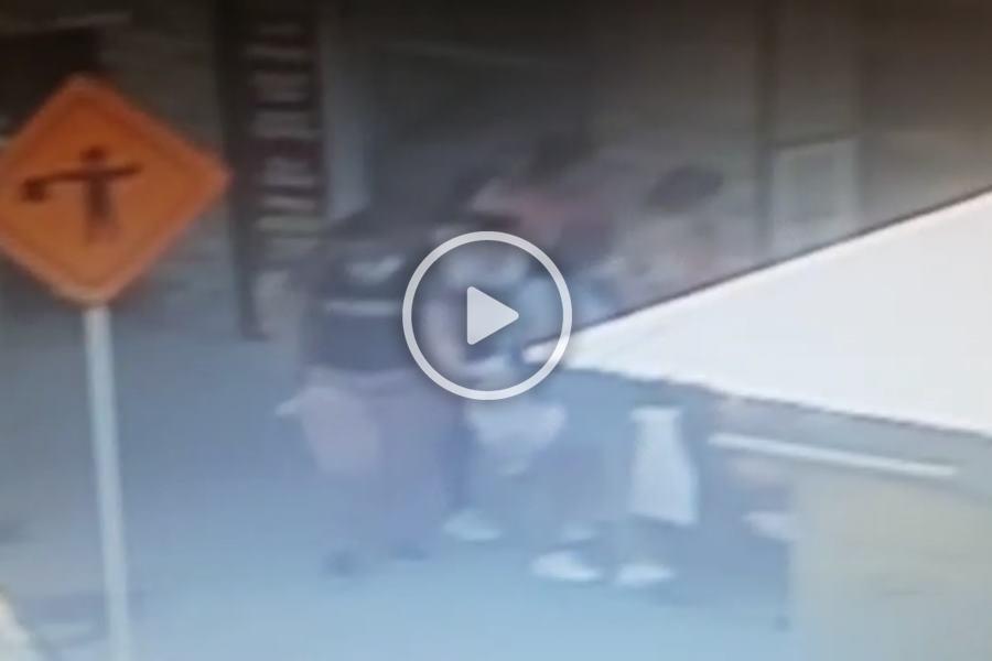 En el video se observa cómo va caminando por el andén una mujer que empuja un coche de bebé, mientras se detienen para entrar a una panadería, las ladronas aprovechan para asediarla y tratar de abrirle el bolso que lleva a la espalda.